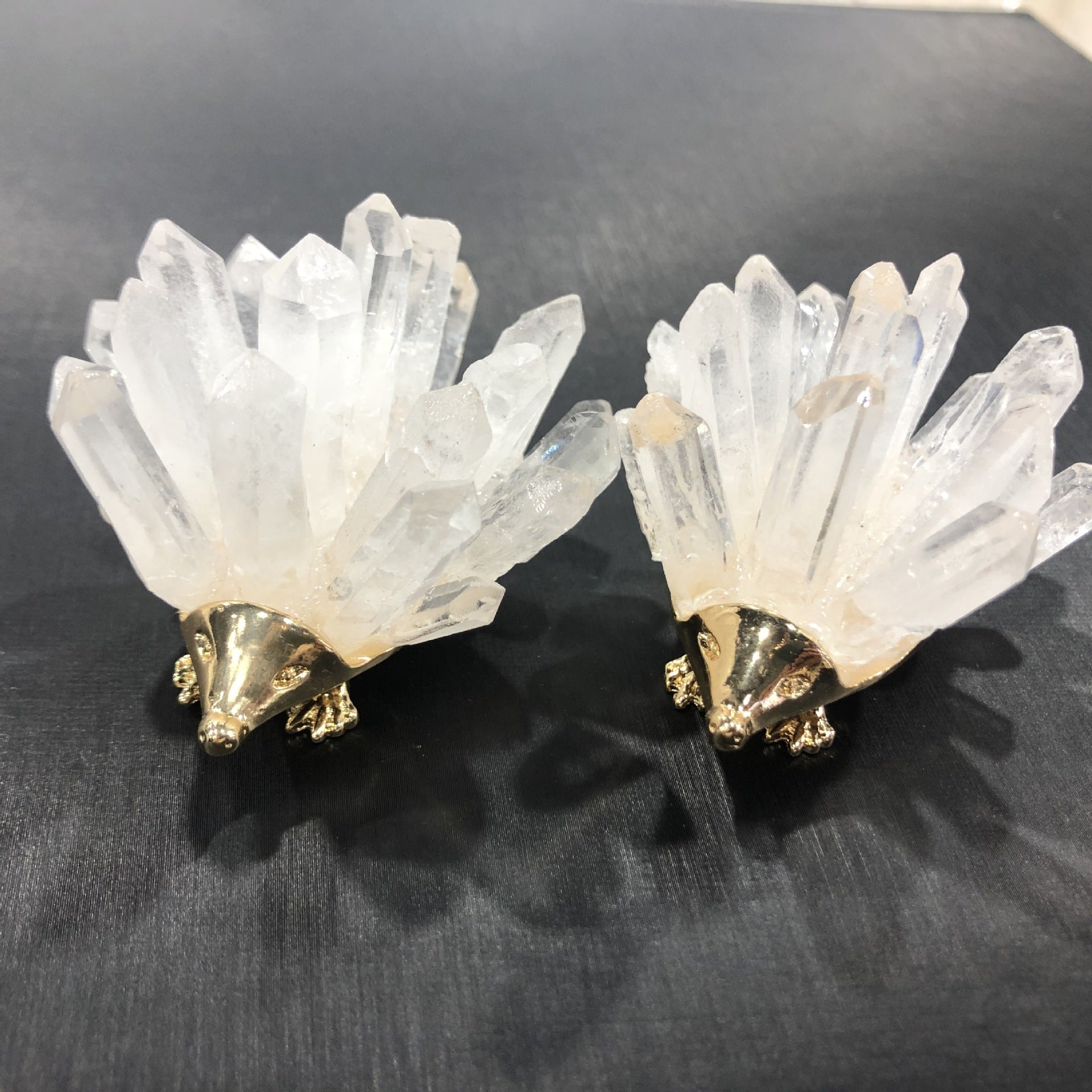 Clear Quartz Hedgehog Display Stand ✨ | Nordic Healing Crystal Sculpture for Jewelry & Energy Work